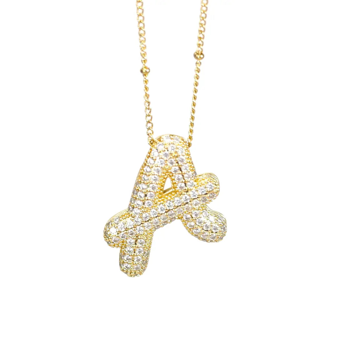 Crafted from 18K gold, this initial necklace stands out with the intricate CZ stones. 18" chain length with 2" extension. Initial size 1"