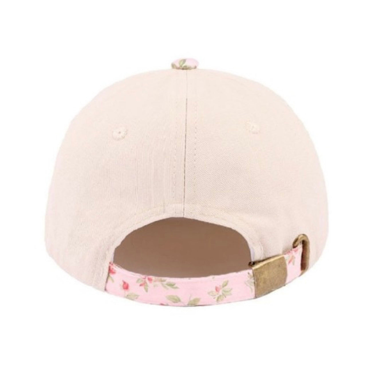 Two tone panel hat with floral bill and embroidered front "Jesus is King". Adjustable metal back.