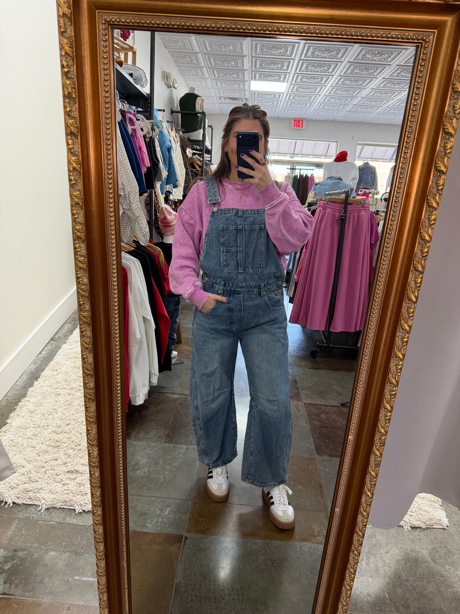 Model is wearing size L/XL for an oversized look.