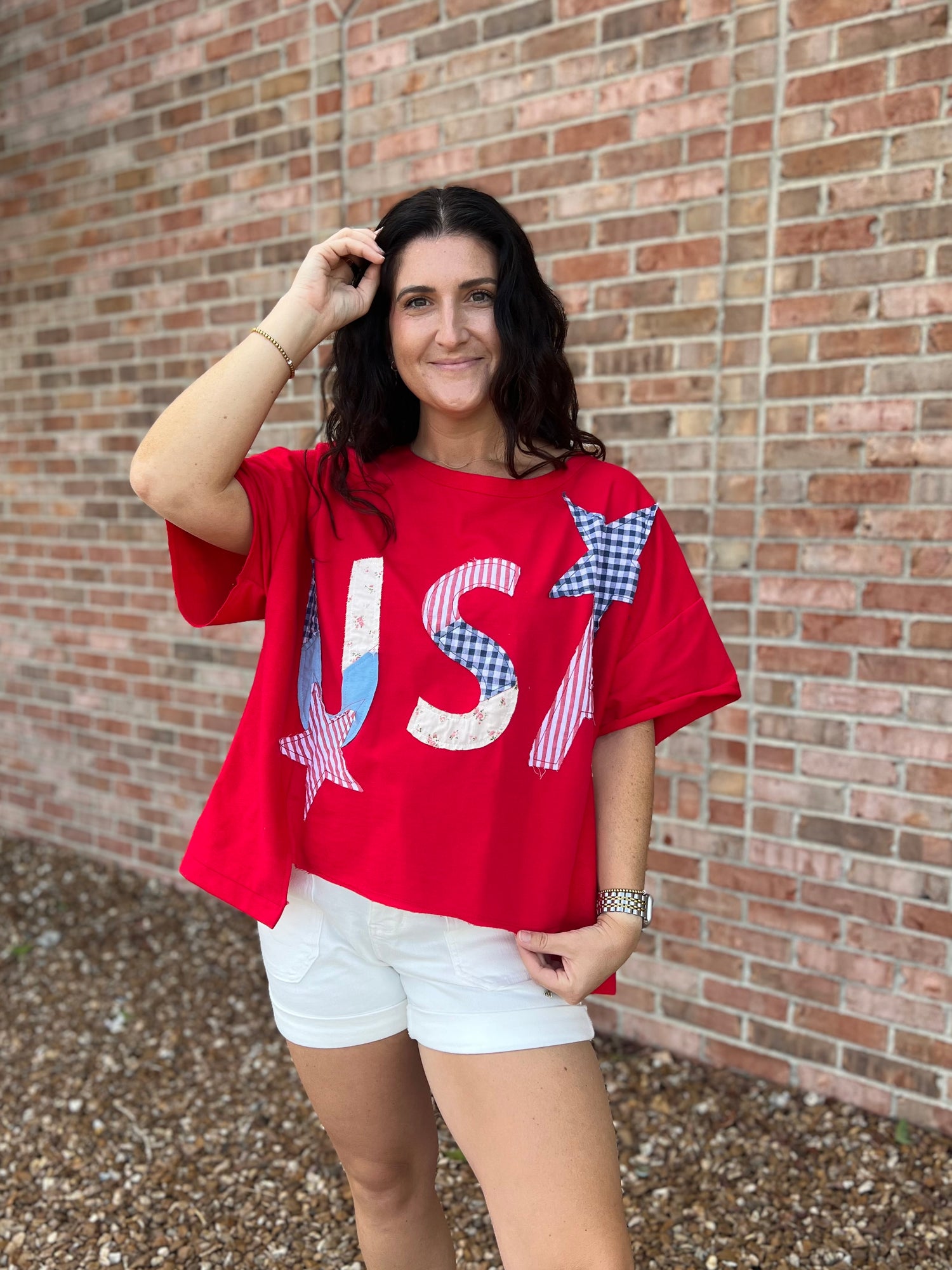 Model is wearing size S. Lana wears size M.